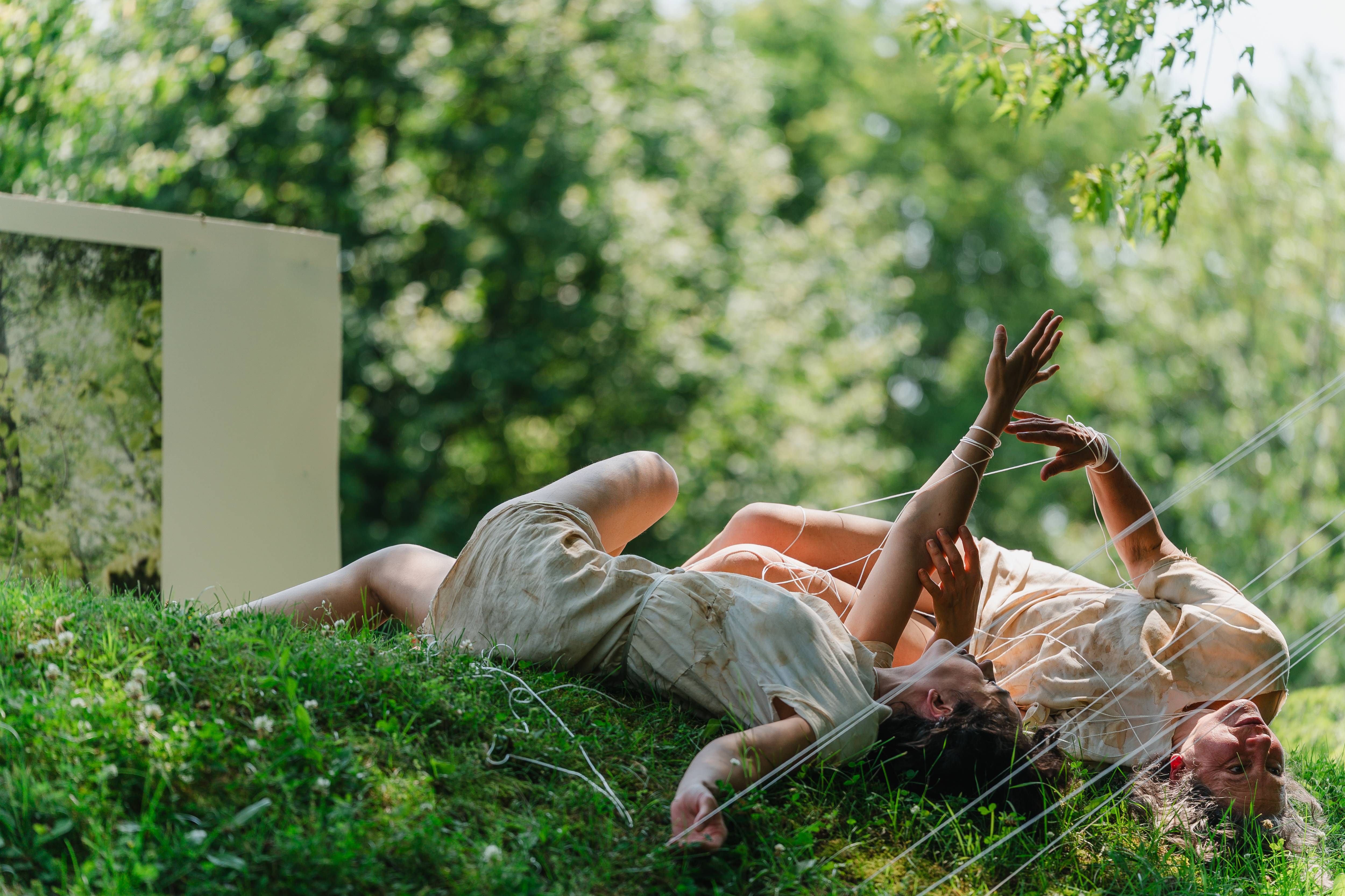 Komorebi-Jouer la lumière est une installation performative inspirée par ce mot japonais intraduisible qui désigne la lumière du soleil filtrant à travers les feuilles des arbres. Ce phénomène, à la fois ordinaire et sublime, devient ici le point d’ancrage d’une réflexion sur les liens tissés entre les corps, le territoire et la lumière elle-même.