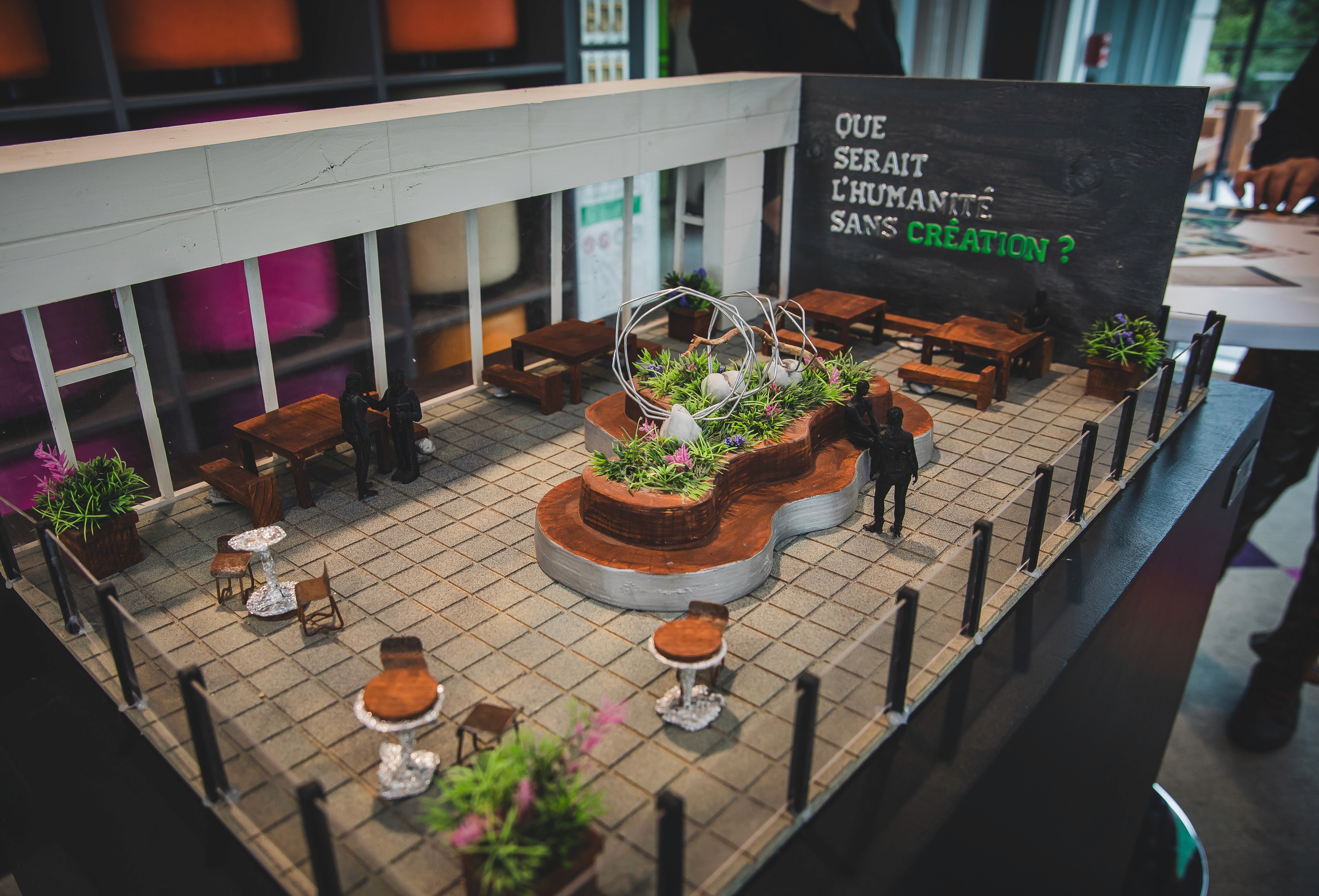 La Terrasse d’inspiration-Janine Bombardier (située au Studio de création de l'Université de Sherbrooke) a officiellement été inaugurée cette semaine et on y trouve notamment l'oeuvre d'art public permanente "Matière à réflexion"